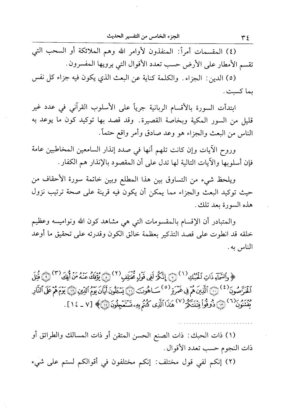 (4) المقسمات أمرا: المنفذون لأوامر الله وهم الملائكة أو السحب التي تقسم الأمطار على الأرض حسب تعدد الأقوال التي يرويها المفسرون.