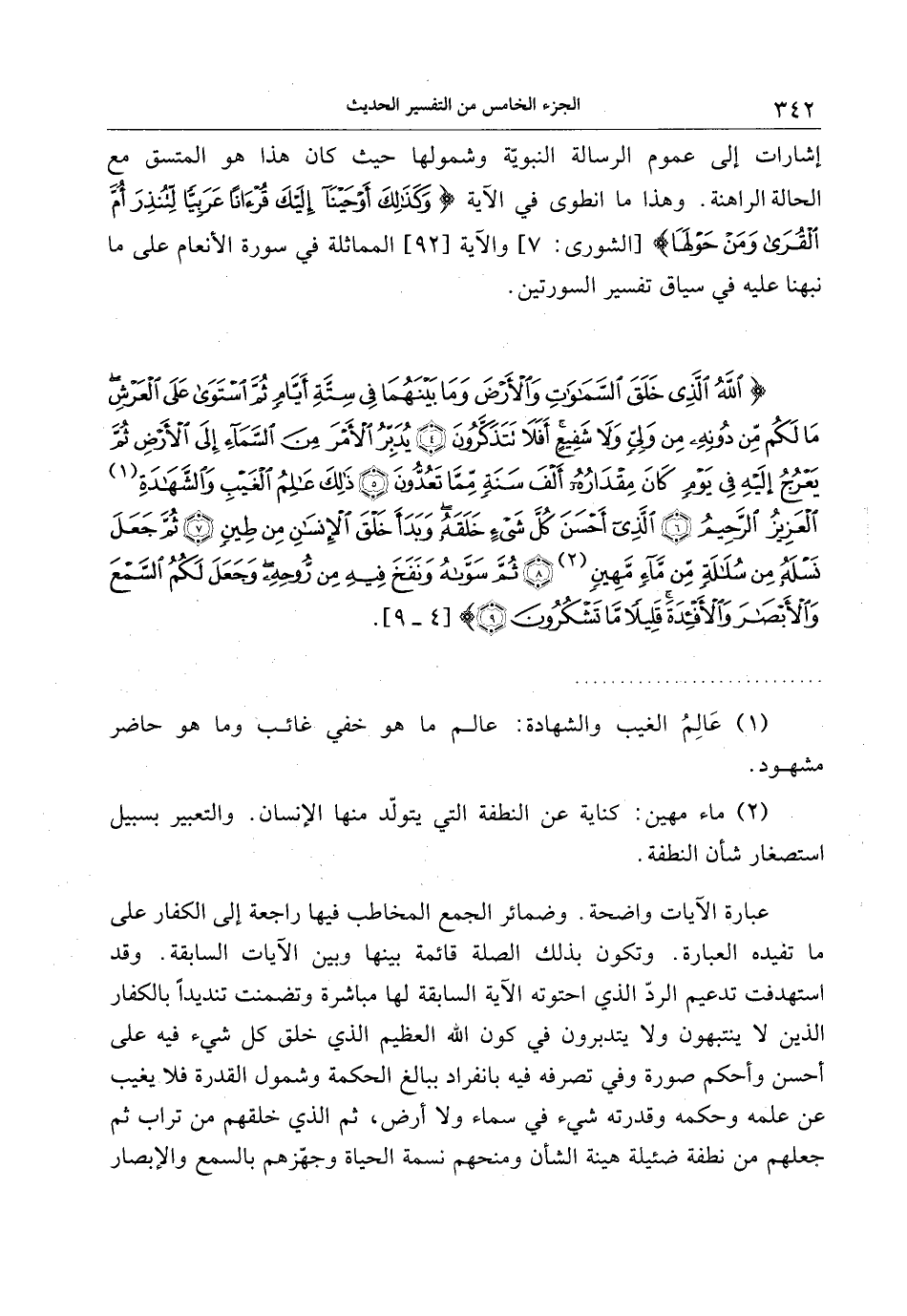 إشارات إلى عموم الرسالة النبويّة وشمولها حيث كان هذا هو المتسق مع الحالة الراهنة. وهذا ما انطوى في الآية وَكَذلِكَ أَوْحَيْنا إِلَيْكَ قُرْآناً عَرَبِيًّا لِتُنْذِرَ أُمَّ الْقُرى وَمَنْ حَوْلَها [الشورى: 7] والآية [92] المماثلة في سورة الأنعام على ما نبهنا عليه في سياق تفسير السورتين.