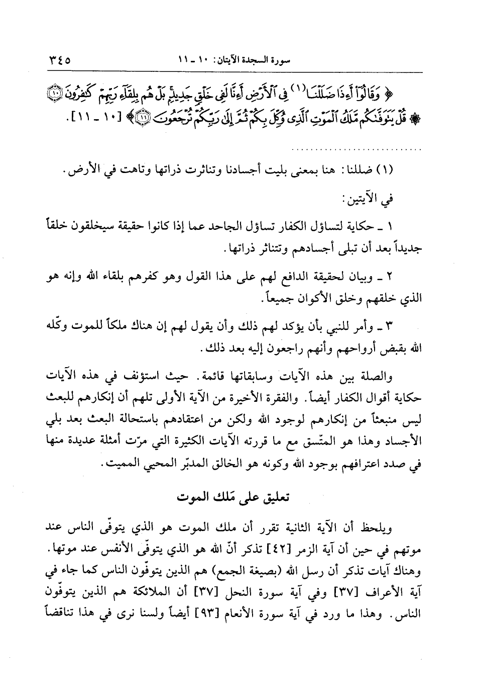 وَقالُوا أَإِذا ضَلَلْنا فِي الْأَرْضِ أَإِنَّا لَفِي خَلْقٍ جَدِيدٍ بَلْ هُمْ بِلِقاءِ رَبِّهِمْ كافِرُونَ (10) قُلْ يَتَوَفَّاكُمْ مَلَكُ الْمَوْتِ الَّذِي وُكِّلَ بِكُمْ ثُمَّ إِلى رَبِّكُمْ تُرْجَعُونَ (11)