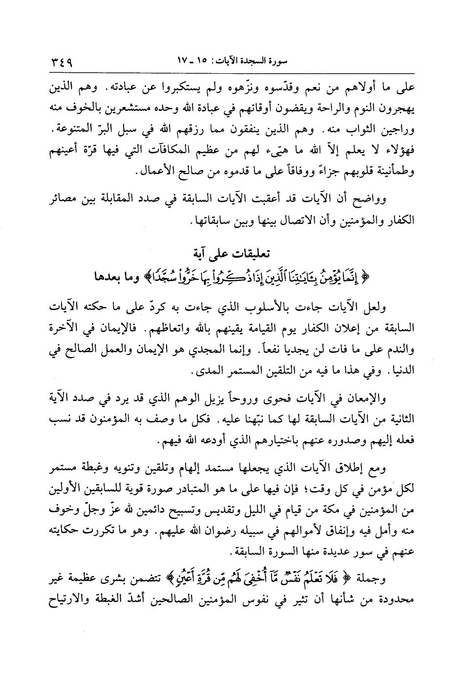 تعليقات على آية إِنَّما يُؤْمِنُ بِآياتِنَا الَّذِينَ إِذا ذُكِّرُوا بِها خَرُّوا سُجَّداً وما بعدها