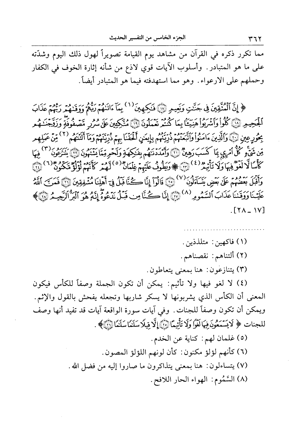 [سورة الطور (52) : الآيات 17 الى 28]
