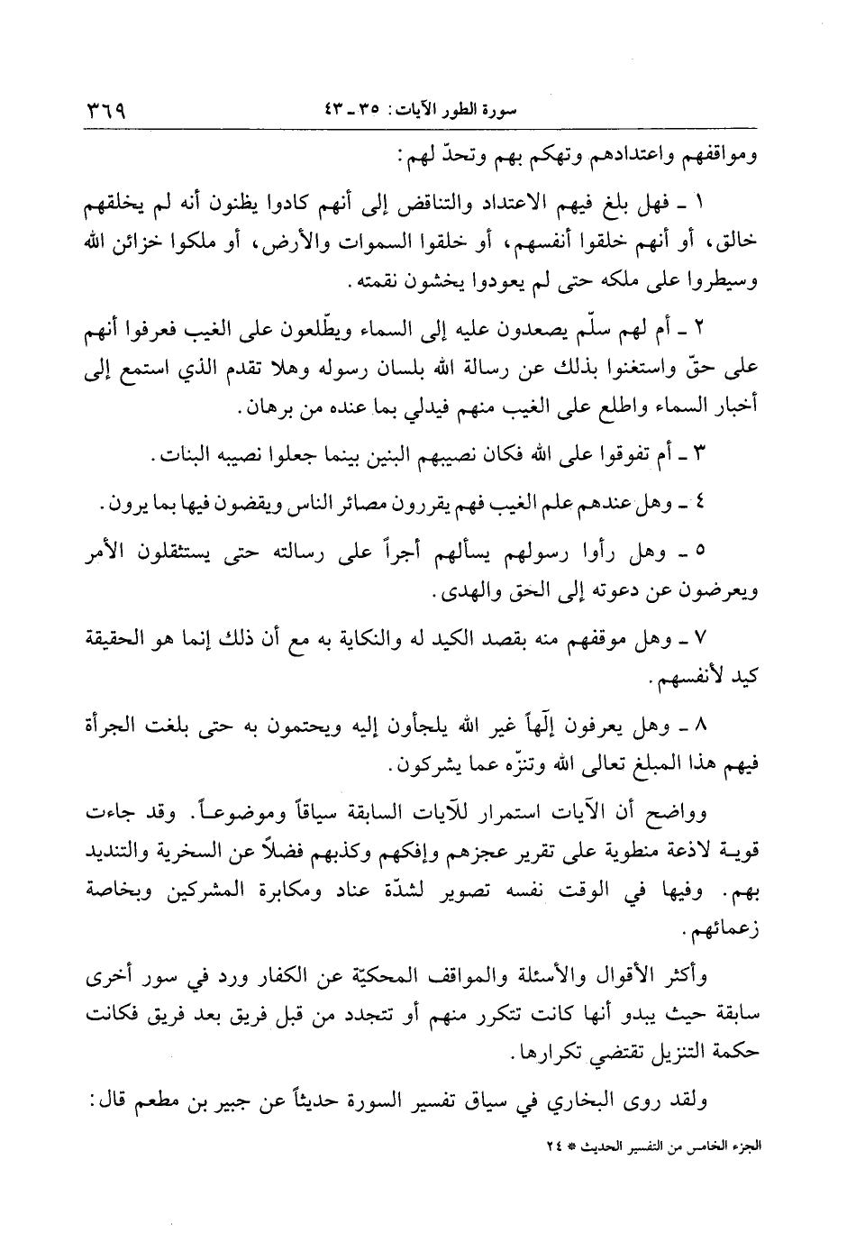 ولقد روى البخاري في سياق تفسير السورة حديثا عن جبير بن مطعم قال: