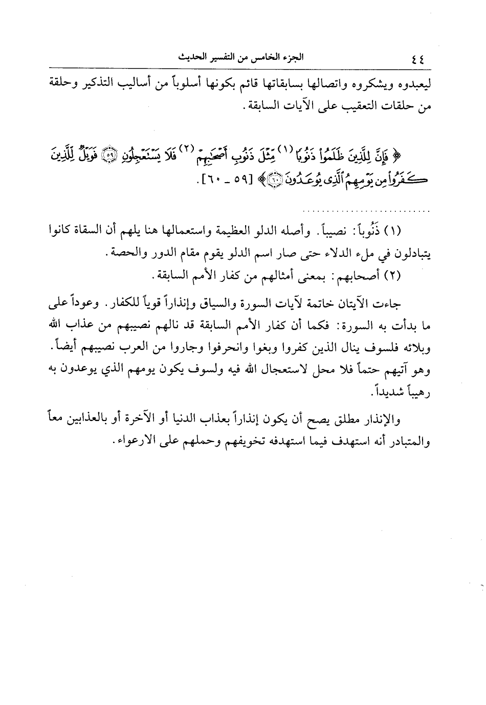 فَإِنَّ لِلَّذِينَ ظَلَمُوا ذَنُوباً مِثْلَ ذَنُوبِ أَصْحابِهِمْ فَلا يَسْتَعْجِلُونِ (59) فَوَيْلٌ لِلَّذِينَ كَفَرُوا مِنْ يَوْمِهِمُ الَّذِي يُوعَدُونَ (60)