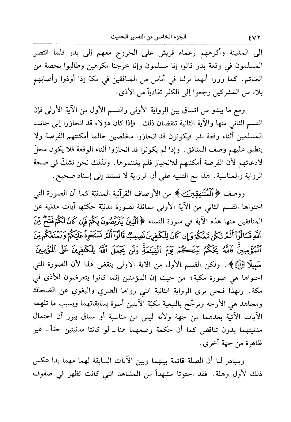 ومع ما يبدو من اتساق بين الرواية الأولى والقسم الأول من الآية الأولى فإن القسم الثاني منها والآية الثانية تنقضان ذلك. فإذا كان هؤلاء قد انحازوا إلى جانب المسلمين أثناء وقعة بدر فيكونون قد انحازوا مخلصين حالما أمكنتهم الفرصة ولا ينطبق عليهم وصف المنافق. وإذا لم يكونوا قد انحازوا أثناء الوقعة فلا يكون محلّ لادعائهم لأن الفرصة أمكنتهم للانحياز فلم يغتنموها. ولذلك نحن نشكّ في صحة الرواية والمناسبة. هذا مع التنبيه على أن الرواية لا تستند إلى إسناد صحيح.