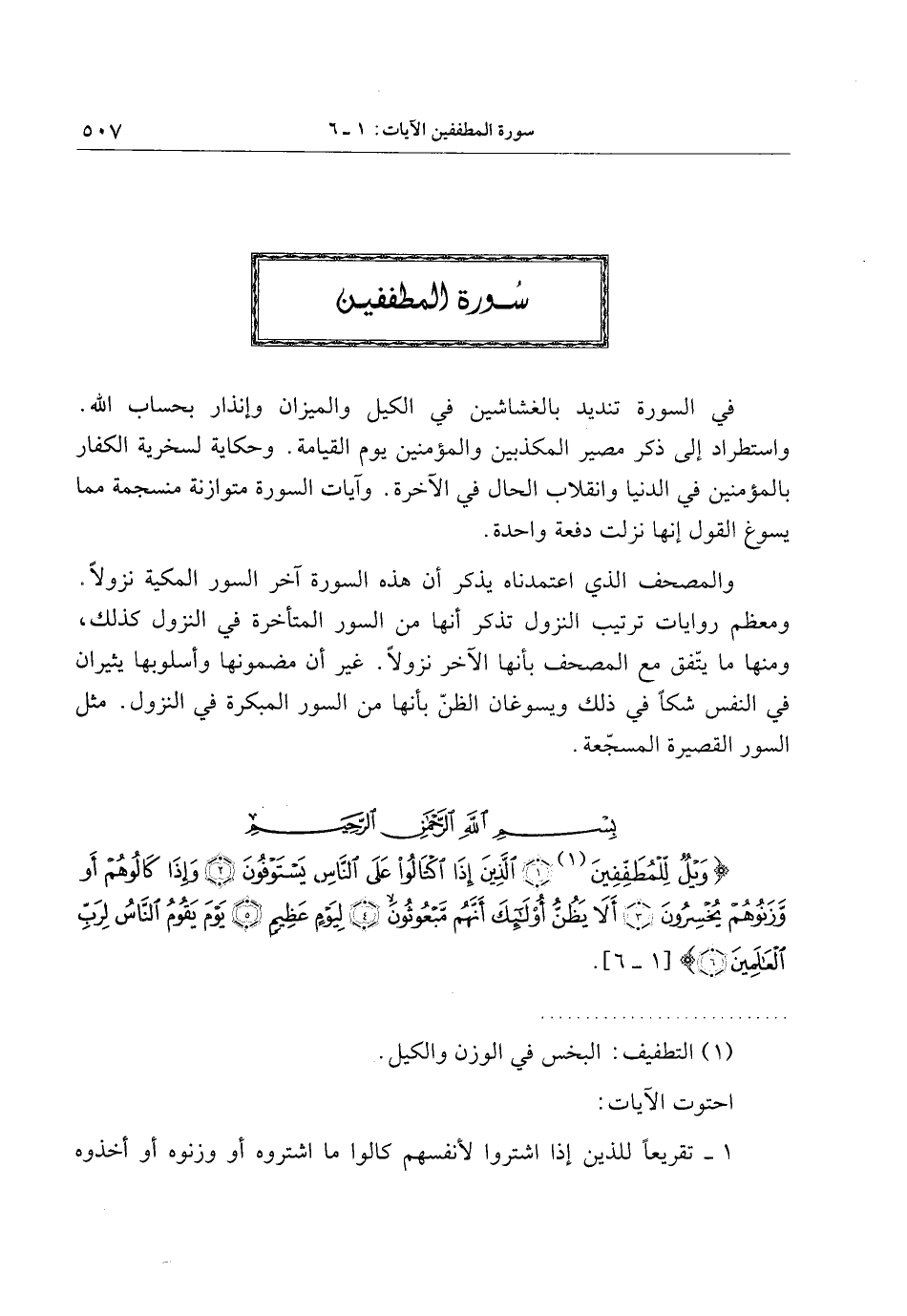 في السورة تنديد بالغشاشين في الكيل والميزان وإنذار بحساب الله.