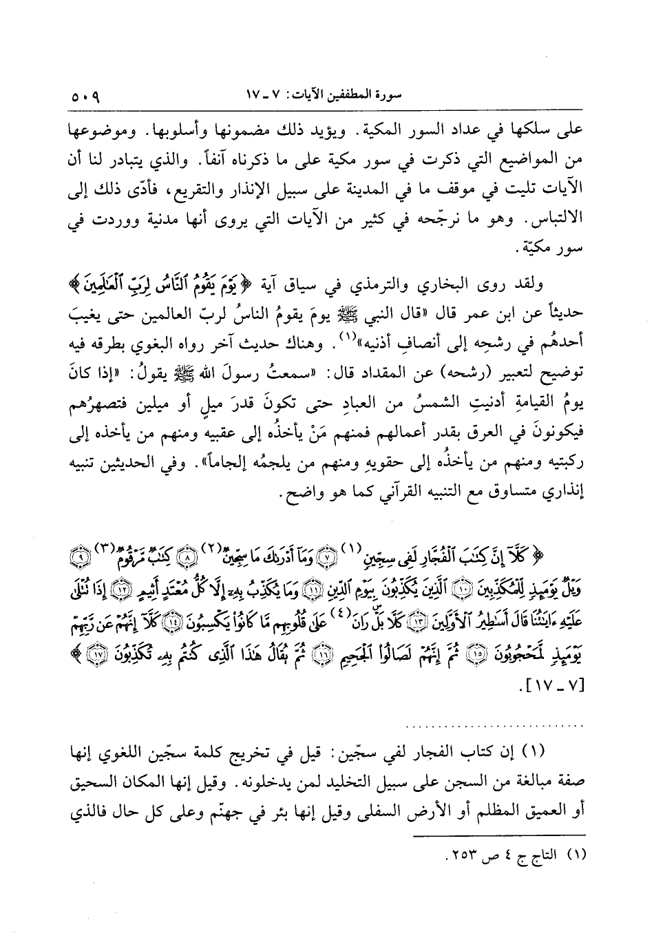 . (1) إن كتاب الفجار لفي سجّين: قيل في تخريج كلمة سجّين اللغوي إنها صفة مبالغة من السجن على سبيل التخليد لمن يدخلونه. وقيل إنها المكان السحيق أو العميق المظلم أو الأرض السفلى وقيل إنها بئر في جهنّم وعلى كل حال فالذي