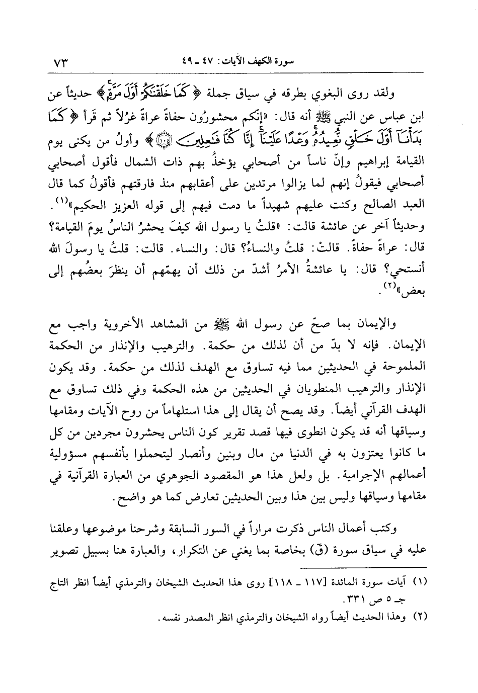 (1) آيات سورة المائدة [117- 118] روى هذا الحديث الشيخان والترمذي أيضا انظر التاج ج 5 ص 331.