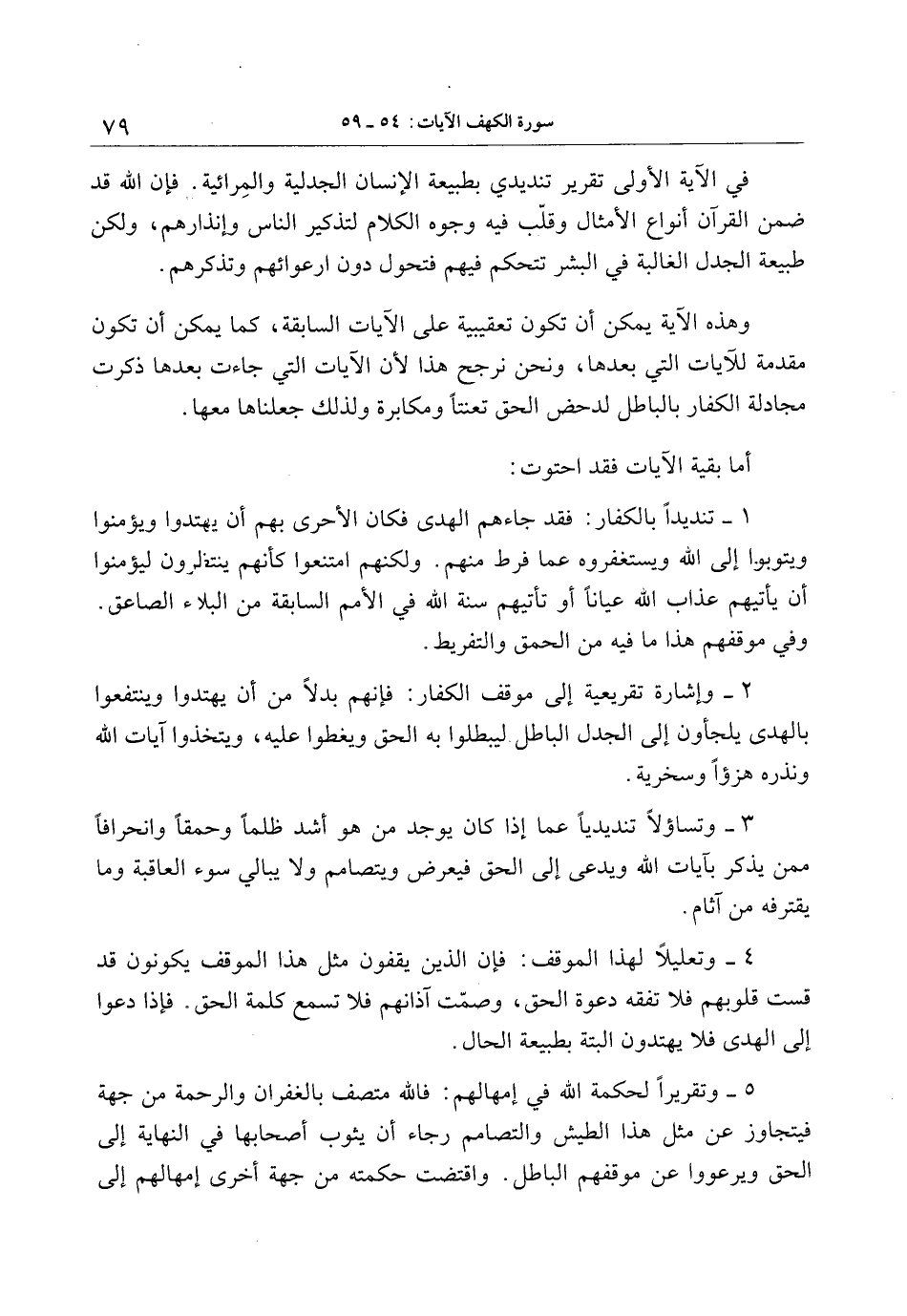 وهذه الآية يمكن أن تكون تعقيبية على الآيات السابقة، كما يمكن أن تكون مقدمة للآيات التي بعدها، ونحن نرجح هذا لأن الآيات التي جاءت بعدها ذكرت مجادلة الكفار بالباطل لدحض الحق تعنتا ومكابرة ولذلك جعلناها معها.
