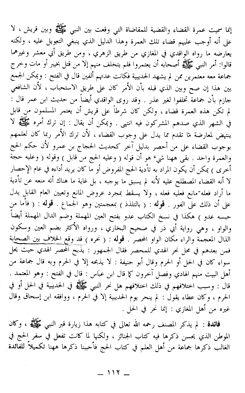 ـــــــــــــــــــــــــــــQإنَّمَا سُمِّيَتْ عُمْرَةَ الْقَضَاءِ وَالْقَضِيَّةِ لِلْمُقَاضَاةِ الَّتِي وَقَعَتْ بَيْنَ النَّبِيِّ - صَلَّى اللَّهُ عَلَيْهِ وَسَلَّمَ - وَبَيْنَ قُرَيْشٍ، لَا عَلَى أَنَّهُ أَوْجَبَ عَلَيْهِمْ قَضَاءَ تِلْكَ الْعُمْرَةِ وَهَذَا الدَّلِيلُ الَّذِي يَنْبَغِي التَّعْوِيلُ عَلَيْهِ، وَلَكِنَّهُ يُعَارِضُهُ مَا رَوَاهُ الْوَاقِدِيُّ فِي الْمَغَازِي مِنْ طَرِيقِ الزُّهْرِيِّ، وَعَنْ طَرِيقِ أَبِي مَعْشَرٍ وَغَيْرِهِمَا قَالُوا: «أَمَرَ النَّبِيُّ - صَلَّى اللَّهُ عَلَيْهِ وَسَلَّمَ - أَصْحَابَهُ أَنْ يَعْتَمِرُوا فَلَمْ يَتَخَلَّفْ مِنْهُمْ إلَّا مَنْ قُتِلَ بِخَيْبَرَ أَوْ مَاتَ وَخَرَجَ جَمَاعَةٌ مَعَهُ مُعْتَمِرِينَ مِمَّنْ لَمْ يَشْهَدْ الْحُدَيْبِيَةَ فَكَانَتْ عِدَّتُهُمْ أَلْفَيْنِ»