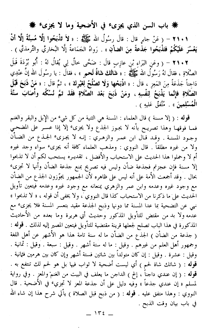 2102 - (وَعَنْ الْبَرَاءِ بْنِ عَازِبٍ قَالَ «ضَحَّى خَالٌ لِي يُقَالُ لَهُ أَبُو بُرْدَةَ قَبْلَ الصَّلَاةِ، فَقَالَ لَهُ رَسُولُ اللَّهِ - صَلَّى اللَّهُ عَلَيْهِ وَسَلَّمَ -: شَاتُك شَاةُ لَحْمٍ فَقَالَ يَا رَسُولَ اللَّهِ إنَّ عِنْدِي دَاجِنًا جَذَعَةً مِنْ الْمَعْزِ، قَالَ: اذْبَحْهَا وَلَا تَصْلُحُ لِغَيْرِك ثُمَّ قَالَ مَنْ ذَبَحَ قَبْلَ الصَّلَاةِ فَإِنَّمَا يَذْبَحُ لِنَفْسِهِ وَمَنْ ذَبَحَ بَعْدَ الصَّلَاةِ فَقَدْ تَمَّ نُسُكُهُ وَأَصَابَ سُنَّةَ الْمُسْلِمِينَ» . مُتَّفَقٌ عَلَيْهِ)