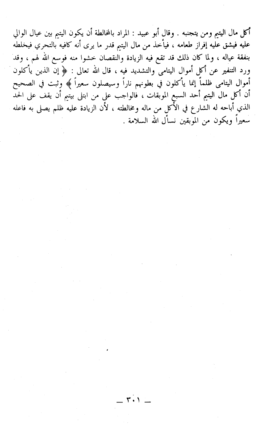 ـــــــــــــــــــــــــــــQأَكْلَ مَالِ الْيَتِيمِ وَمَنْ يَتَجَنَّبُهُ