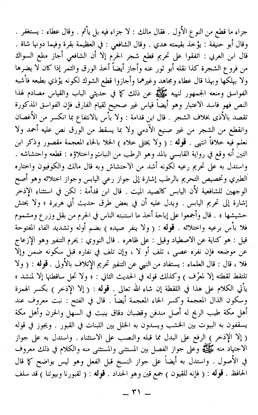 ـــــــــــــــــــــــــــــQجَزَاءِ مَا قُطِعَ مِنْ النَّوْعِ الْأَوَّلِ فَقَالَ مَالِكٌ: لَا جَزَاءَ فِيهِ بَلْ يَأْثَمُ وَقَالَ عَطَاءٌ: يَسْتَغْفِرُ.