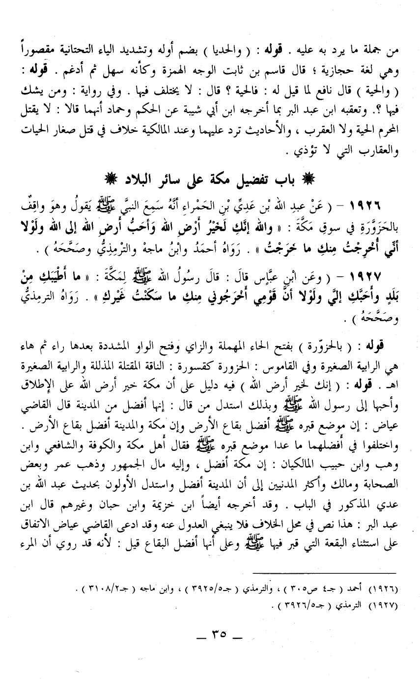 1926 - (عَنْ عَبْدِ اللَّهِ بْنِ عَدِيِّ ابْنِ الْحَمْرَاءِ أَنَّهُ «سَمِعَ النَّبِيَّ - صَلَّى اللَّهُ عَلَيْهِ وَسَلَّمَ - يَقُولُ وَهُوَ وَاقِفٌ بِالْحَزْوَرَةِ فِي سُوقِ مَكَّةَ: وَاَللَّهِ إنَّكِ لَخَيْرُ أَرْضِ اللَّهِ وَأَحَبُّ أَرْضِ اللَّهِ إلَى اللَّهِ وَلَوْلَا أَنِّي أُخْرِجْتُ مِنْكِ مَا خَرَجْتُ» . رَوَاهُ أَحْمَدُ وَابْنُ مَاجَهْ وَالتِّرْمِذِيُّ وَصَحَّحَهُ) .