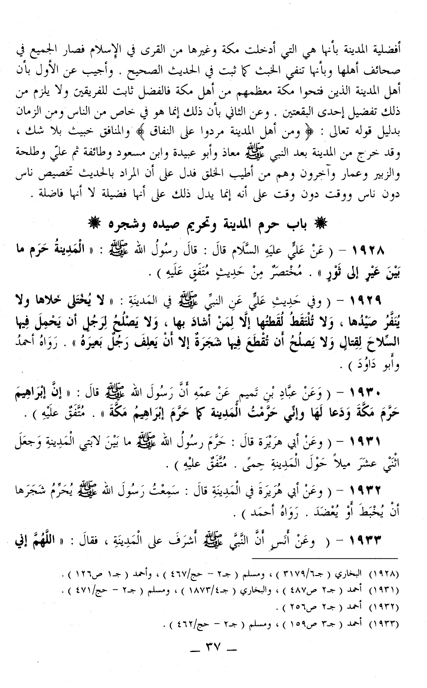 1928 - (عَنْ عَلِيٍّ - عَلَيْهِ السَّلَامُ - قَالَ: قَالَ رَسُولُ اللَّهِ - صَلَّى اللَّهُ عَلَيْهِ وَسَلَّمَ -: «الْمَدِينَةُ حَرَمٌ مَا بَيْنَ عَيْرٍ إلَى ثَوْرٍ» مُخْتَصَرٌ مِنْ حَدِيثٍ مُتَّفَقٍ عَلَيْهِ) .