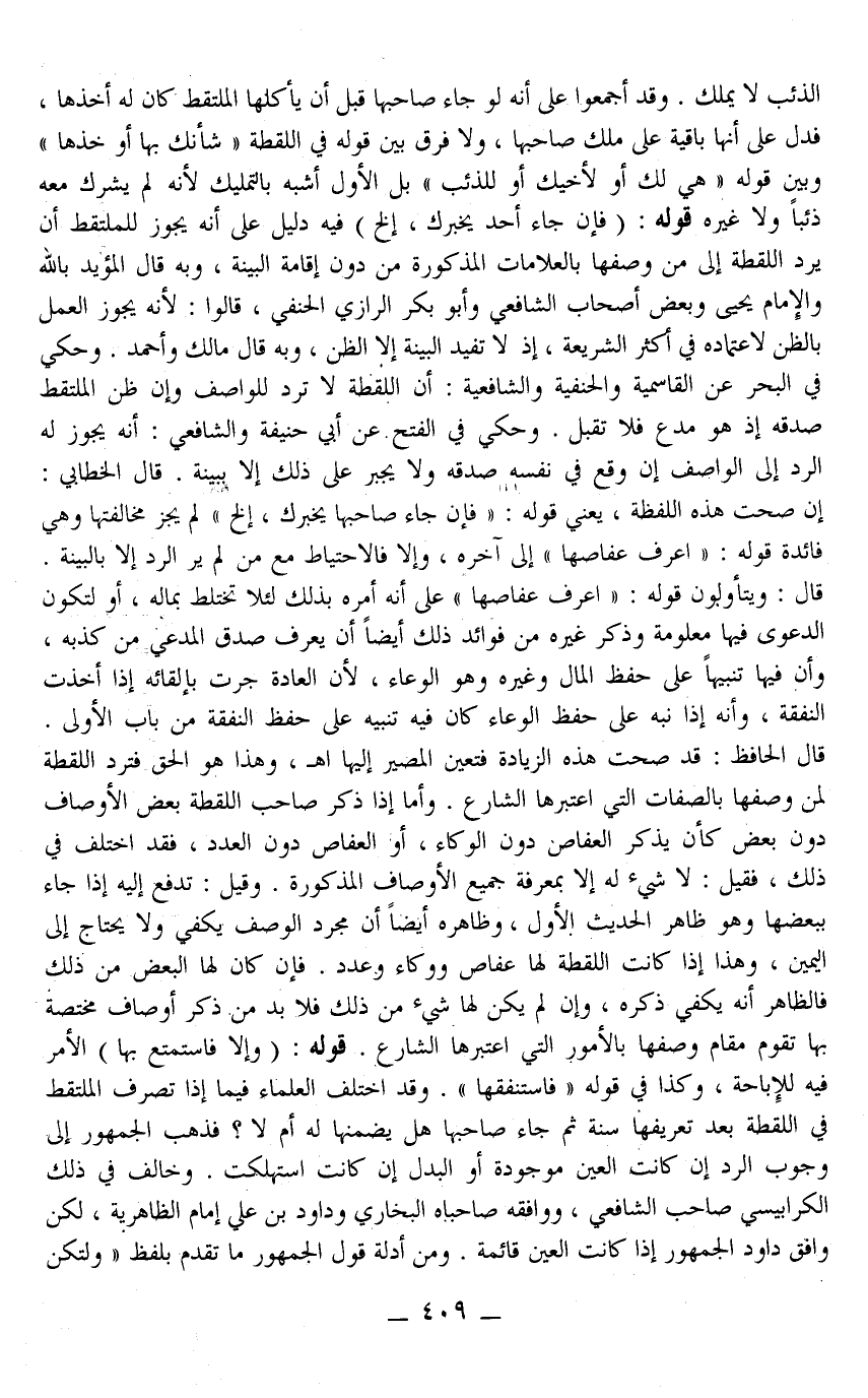 وَقَدْ أَجْمَعُوا عَلَى أَنَّهُ لَوْ جَاءَ صَاحِبُهَا قَبْلَ أَنْ يَأْكُلَهَا الْمُلْتَقِطُ كَانَ لَهُ أَخْذُهَا، فَدَلَّ عَلَى أَنَّهَا بَاقِيَةٌ عَلَى مِلْكِ صَاحِبِهَا، وَلَا فَرْقَ بَيْنَ قَوْلِهِ فِي اللُّقَطَةِ " شَأْنَكَ بِهَا أَوْ خُذْهَا " وَبَيْنَ قَوْلِهِ " هِيَ لَكَ أَوْ لِأَخِيكَ أَوْ لِلذِّئْبِ " بَلْ الْأَوَّلُ أَشْبَهُ بِالتَّمْلِيكِ لِأَنَّهُ لَمْ يُشْرِكْ مَعَهُ ذِئْبًا وَلَا غَيْرَهُ