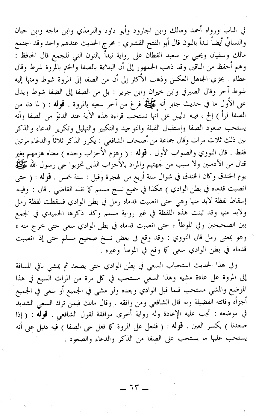 وَقِيلَ: سَنَةَ خَمْسٍ قَوْلُهُ: حَتَّى انْصَبَّتْ قَدَمَاهُ فِي بَطْنِ الْوَادِي هَكَذَا فِي جَمِيعِ نُسَخِ مُسْلِمٍ كَمَا نَقَلَهُ الْقَاضِي قَالَ: وَفِيهِ إسْقَاطُ لَفْظَةٍ لَا بُدَّ مِنْهَا وَهِيَ حَتَّى انْصَبَّتْ قَدَمَاهُ فِي بَطْنِ الْوَادِي فَسَقَطَتْ لَفْظَةُ رَمَلَ وَلَا بُدَّ مِنْهَا وَقَدْ ثَبَتَتْ هَذِهِ اللَّفْظَةُ فِي غَيْرِ رِوَايَةِ مُسْلِمٍ وَكَذَا ذَكَرَهَا الْحُمَيْدِيُّ فِي الْجَمْعِ بَيْنَ الصَّحِيحَيْنِ وَفِي الْمُوَطَّأِ حَتَّى انْصَبَّتْ قَدَمَاهُ فِي بَطْنِ الْوَادِي سَعَى حَتَّى خَرَجَ مِنْهُ، وَهُوَ بِمَعْنَى رَمَلَ قَالَ النَّوَوِيُّ: وَقَدْ وَقَعَ فِي بَعْضِ نُسَخِ صَحِيحِ مُسْلِمٍ حَتَّى إذَا انْصَبَّتْ قَدَمَاهُ فِي بَطْنِ الْوَادِي سَعَى كَمَا وَقَعَ فِي الْمُوَطَّأِ وَغَيْرِهِ وَفِي هَذَا الْحَدِيثِ اسْتِحْبَابُ السَّعْيِ فِي بَطْنِ الْوَادِي حَتَّى يَصْعَدَ ثُمَّ يَمْشِيَ بَاقِيَ الْمَسَافَةِ إلَى الْمَرْوَةِ عَلَى عَادَةِ مَشْيِهِ، وَهَذَا السَّعْيُ مُسْتَحَبٌّ فِي كُلِّ مَرَّةٍ مِنْ الْمَرَّاتِ السَّبْعِ فِي هَذَا الْمَوْضِعِ وَالْمَشْيُ مُسْتَحَبٌّ فِيمَا قَبْلَ الْوَادِي وَبَعْدَهُ وَلَوْ مَشَى فِي الْجَمِيعِ أَوْ سَعَى فِي الْجَمِيعِ أَجْزَأَهُ وَفَاتَتْهُ الْفَضِيلَةُ وَبِهِ قَالَ الشَّافِعِيُّ وَمَنْ وَافَقَهُ وَقَالَ مَالِكٌ فِيمَنْ تَرَكَ السَّعْيَ الشَّدِيدَ فِي مَوْضِعِهِ: تَجِبُ عَلَيْهِ الْإِعَادَةُ وَلَهُ رِوَايَةٌ أُخْرَى مُوَافِقَةٌ لِقَوْلِ الشَّافِعِيِّ قَوْلُهُ: إذَا صَعِدْنَا بِكَسْرِ الْعَيْنِ قَوْلُهُ: (فَفَعَلَ عَلَى الْمَرْوَةِ) كَمَا فَعَلَ عَلَى الصَّفَا فِيهِ دَلِيلٌ عَلَى أَنَّهُ يُسْتَحَبُّ عَلَيْهَا مَا يُسْتَحَبُّ عَلَى الصَّفَا مِنْ الذِّكْرِ وَالدُّعَاءِ وَالصُّعُودِ