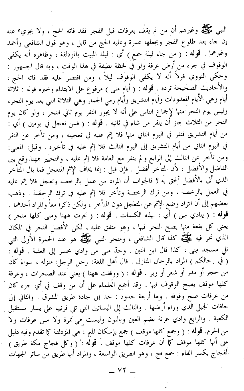 قَوْلُهُ: (مَنْ جَاءَ لَيْلَةَ جَمْعٍ) أَيْ: لَيْلَةَ الْمَبِيتِ بِالْمُزْدَلِفَةِ، وَظَاهِرُهُ أَنَّهُ يَكْفِي الْوُقُوفُ فِي جُزْءٍ مِنْ أَرْضِ عَرَفَةَ وَلَوْ فِي لَحْظَةٍ لَطِيفَةٍ فِي هَذَا الْوَقْتِ، وَبِهِ قَالَ الْجُمْهُورُ: وَحَكَى النَّوَوِيُّ قَوْلًا أَنَّهُ لَا يَكْفِي الْوُقُوفُ لَيْلًا، وَمَنْ اقْتَصَرَ عَلَيْهِ فَقَدْ فَاتَهُ الْحَجُّ، وَالْأَحَادِيثُ الصَّحِيحَةُ تَرُدُّهُ قَوْلُهُ: (أَيَّامُ مِنَى) مَرْفُوعٌ عَلَى الِابْتِدَاءِ وَخَبَرُهُ قَوْلُهُ: (ثَلَاثَةُ أَيَّامٍ) وَهِيَ الْأَيَّامُ الْمَعْدُودَاتُ وَأَيَّامُ التَّشْرِيقِ وَأَيَّامُ رَمْي الْجِمَارِ وَهِيَ الثَّلَاثَةُ الَّتِي بَعْدَ يَوْمِ النَّحْرِ، وَلَيْسَ يَوْمُ النَّحْرِ مِنْهَا لِإِجْمَاعِ النَّاسِ عَلَى أَنَّهُ لَا يَجُوزُ النَّفْرُ يَوْمَ ثَانِي النَّحْرِ، وَلَوْ كَانَ يَوْمُ النَّحْرِ مِنْ الثَّلَاثِ لَجَازَ أَنْ يَنْفِرَ مَنْ شَاءَ فِي ثَانِيهِ