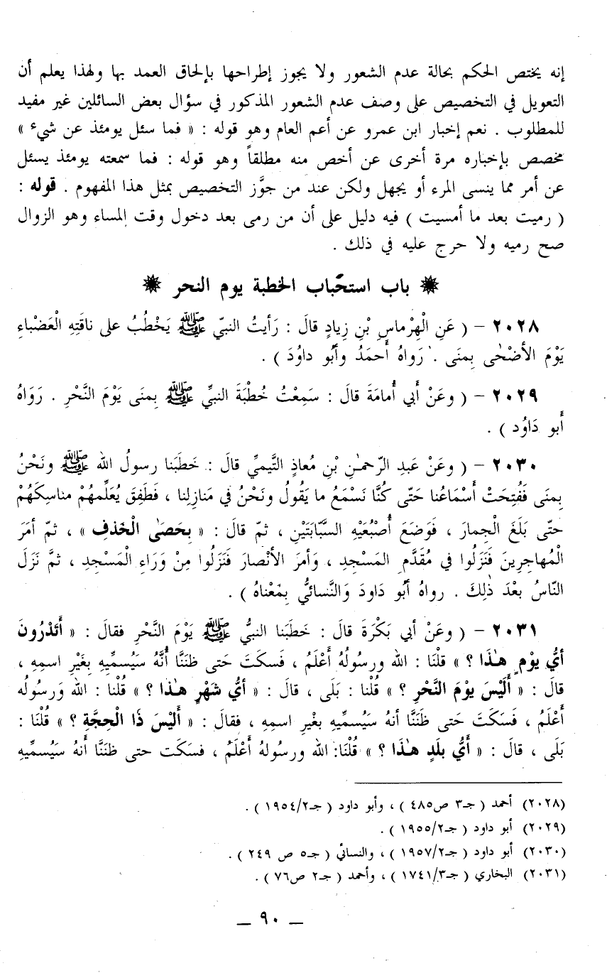 2028 - (عَنْ الْهِرْمَاسِ بْنِ زِيَادٍ قَالَ: «رَأَيْتُ النَّبِيَّ - صَلَّى اللَّهُ عَلَيْهِ وَسَلَّمَ - يَخْطُبُ عَلَى نَاقَتِهِ الْعَضْبَاءِ يَوْمَ الْأَضْحَى بِمِنًى» رَوَاهُ أَحْمَدُ وَأَبُو دَاوُد) .