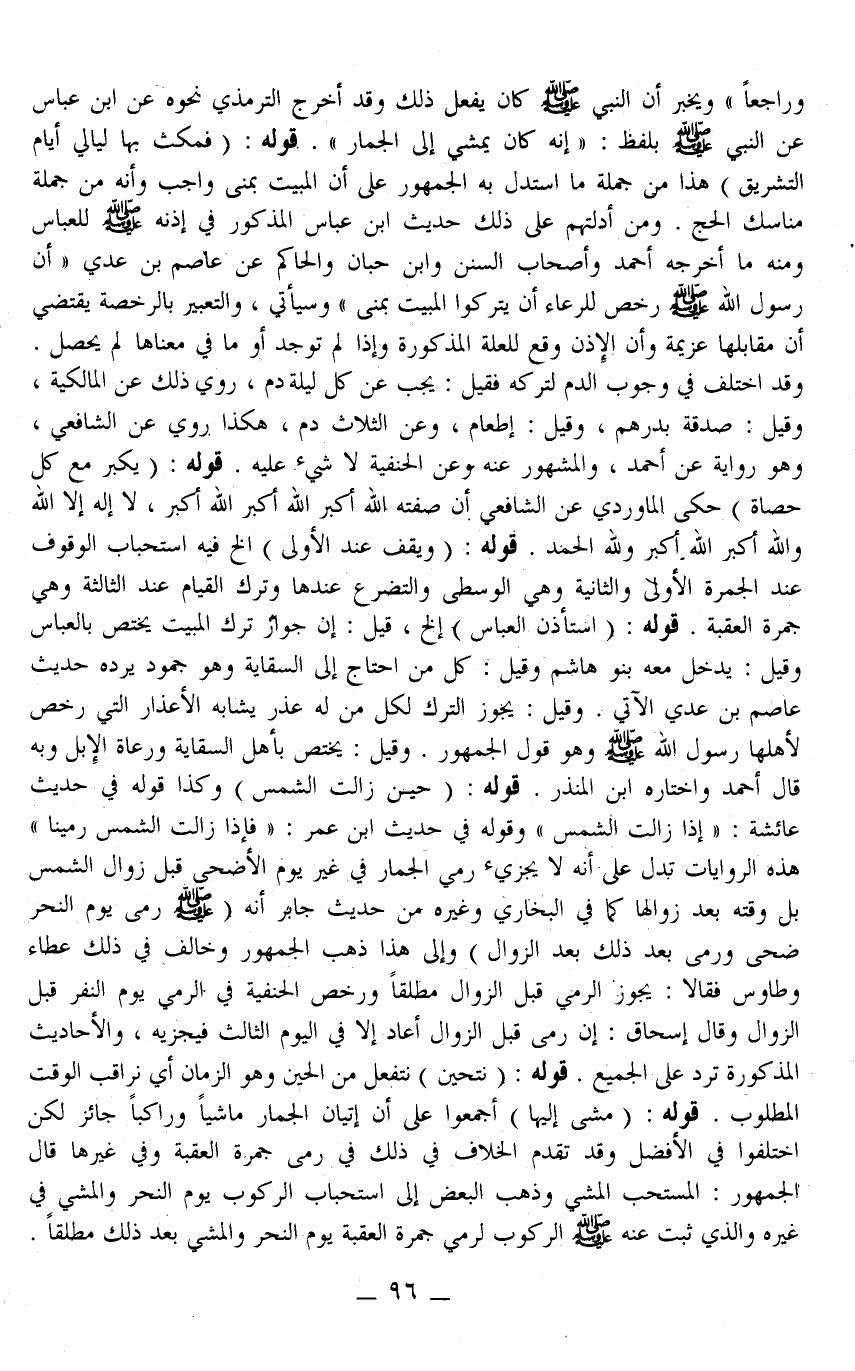 وَقَدْ أَخْرَجَ التِّرْمِذِيُّ نَحْوَهُ عَنْ ابْنِ عَبَّاسٍ عَنْ النَّبِيِّ - صَلَّى اللَّهُ عَلَيْهِ وَسَلَّمَ - بِلَفْظِ: «إنَّهُ كَانَ يَمْشِي إلَى الْجِمَارِ» .