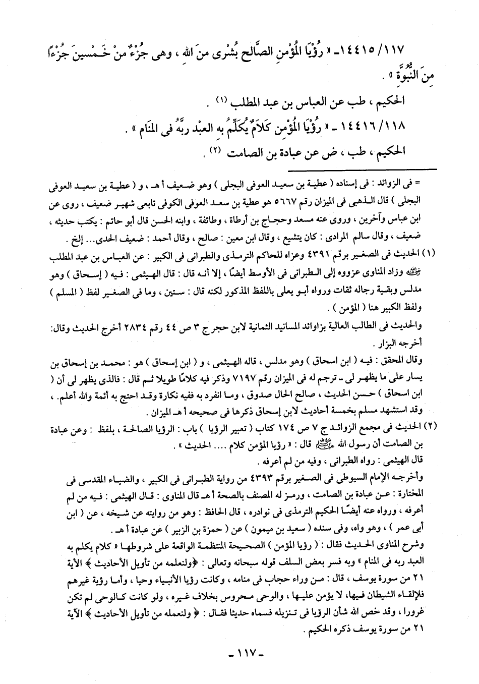 118/ 14416 - "رُؤْيَا المُؤْمِن كَلَامٌ يُكَلِّمُ بهِ العبْد ربَّهُ في المنَام".