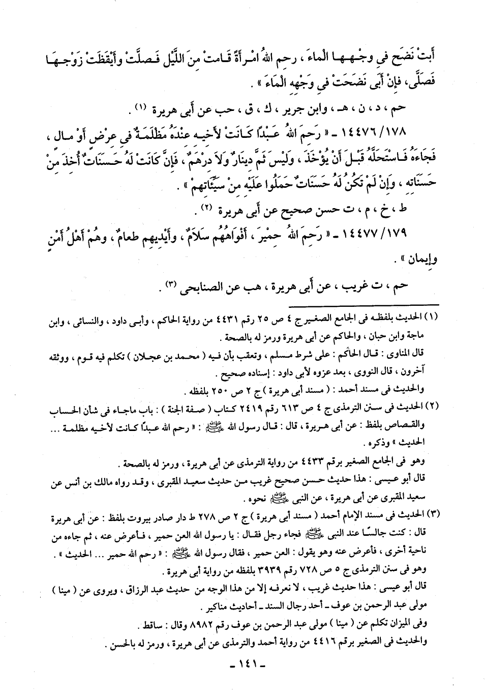 (¬2) الحديث في سنن الترمذى جـ 4 ص 613 رقم 2419 كتاب (صفة الجنة): باب ما جاء في شأن الحساب والقصاص بلفظ: عن أَبى هريرة، قال: قال رسول اللَّه -صلى اللَّه عليه وسلم-: "رحم اللَّه عبدًا كانت لأخيه مظلمة. . . الحديث" وذكره.
