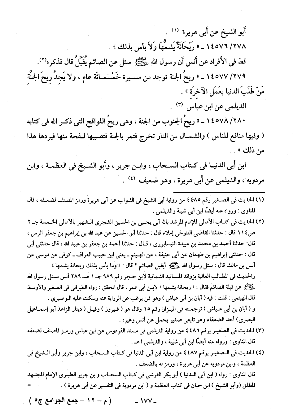 279/ 14577 - "ريحُ الجنة توجد من مسيرة خَمْسمائَة عام، ولا يَجِدُ رِيحَ الجنَّةِ مَنْ طَلَبَ الدنيا بعَمَل الآخِرَةِ".