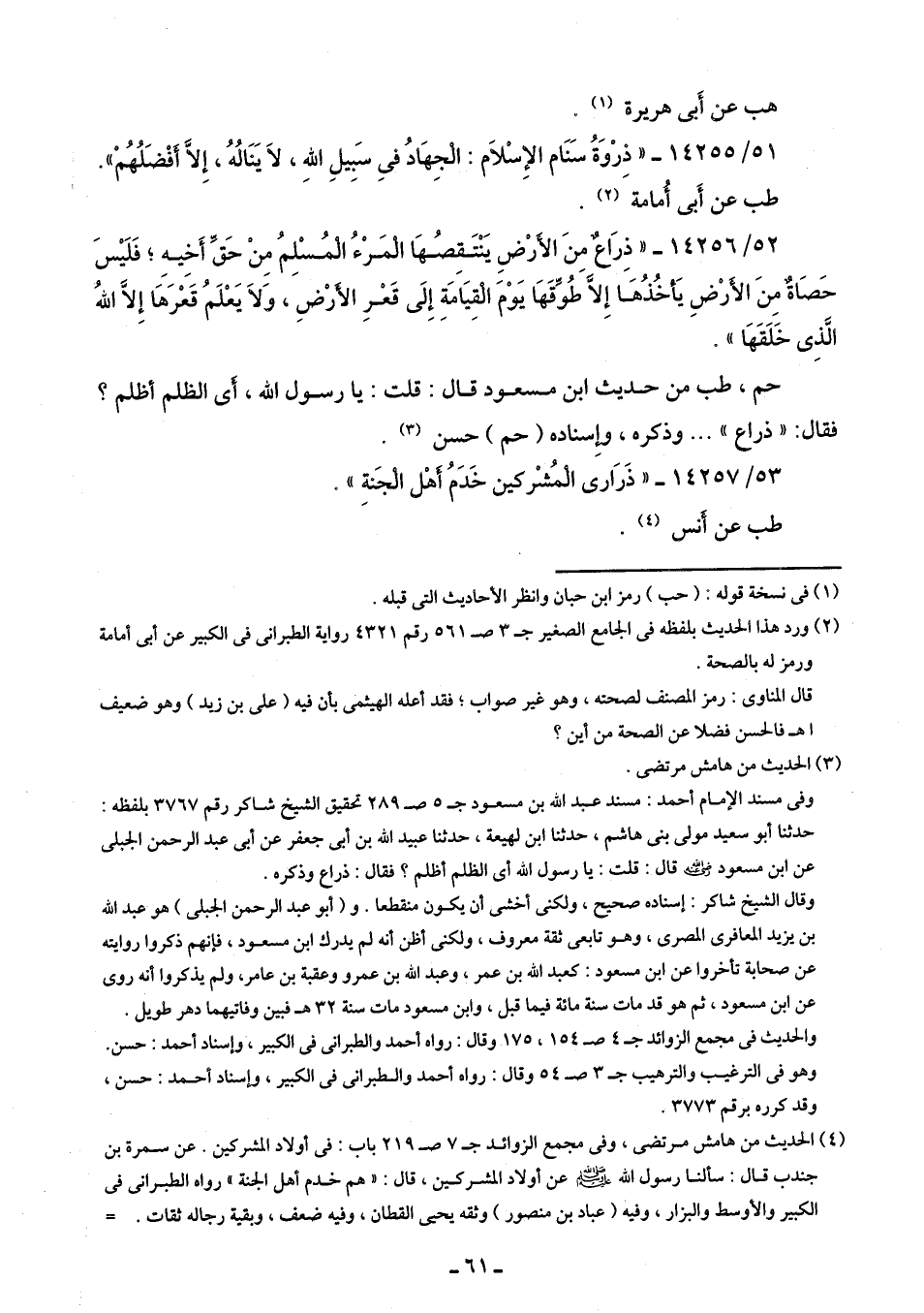 53/ 14257 - "ذَرَارى المُشْركين خَدَمُ أَهْل الْجَنةِ".