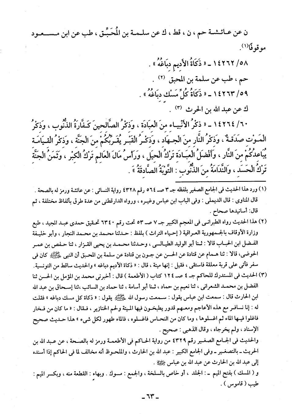 59/ 14263 - "ذَكَاةُ كُلِّ مَسْكٍ دِبَاغُهُ".