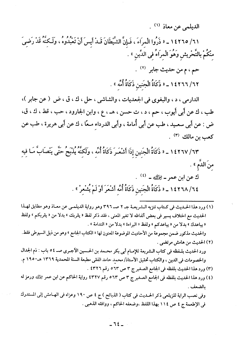 62/ 14266 - "ذَكَاةُ الجَنِينِ ذَكَاةُ أُمِّهِ".