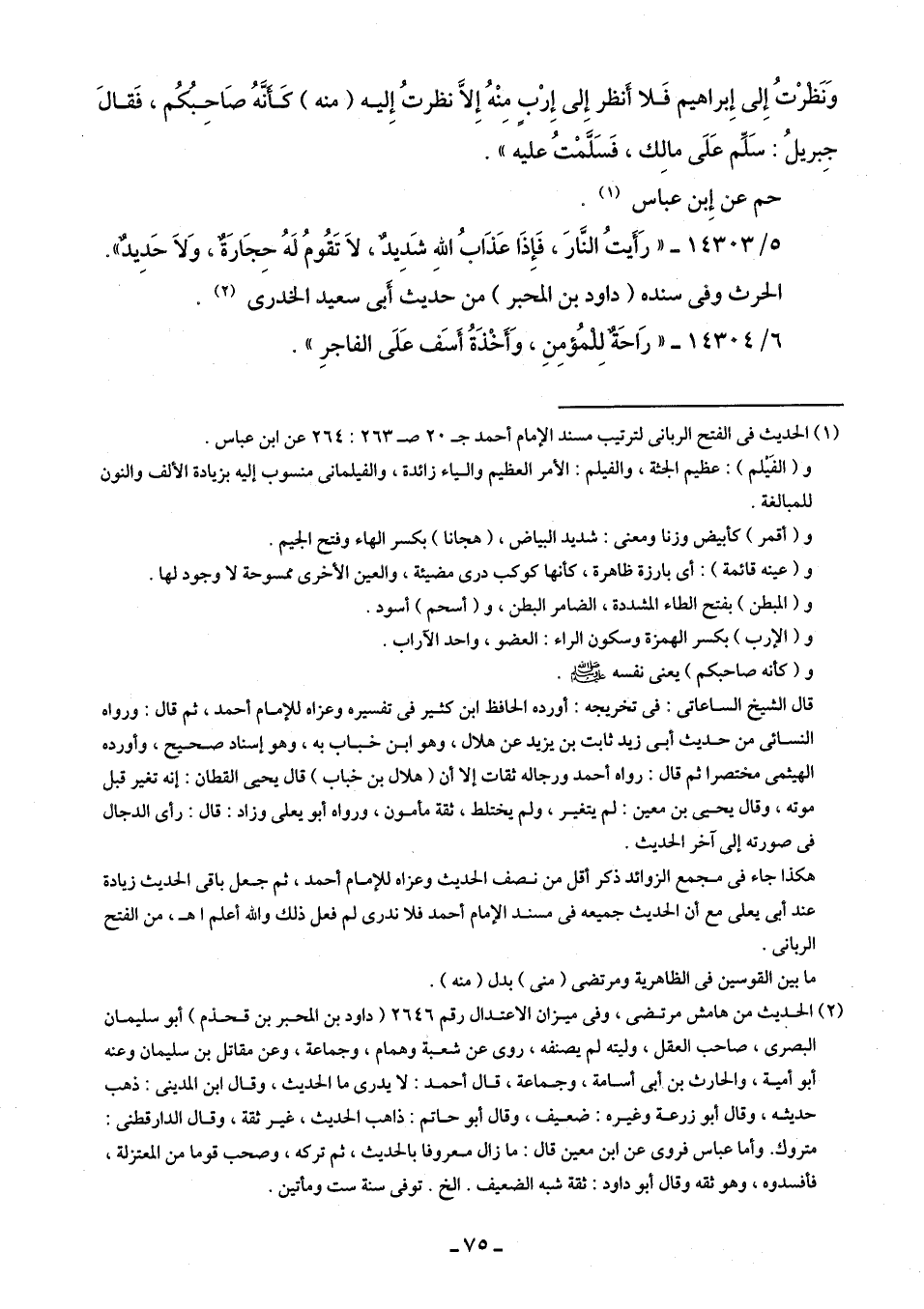 (¬1) الحديث في الفتح الربانى لترتيب مسند الإمام أحمد جـ 20 ص 263: 264 عن ابن عباس.