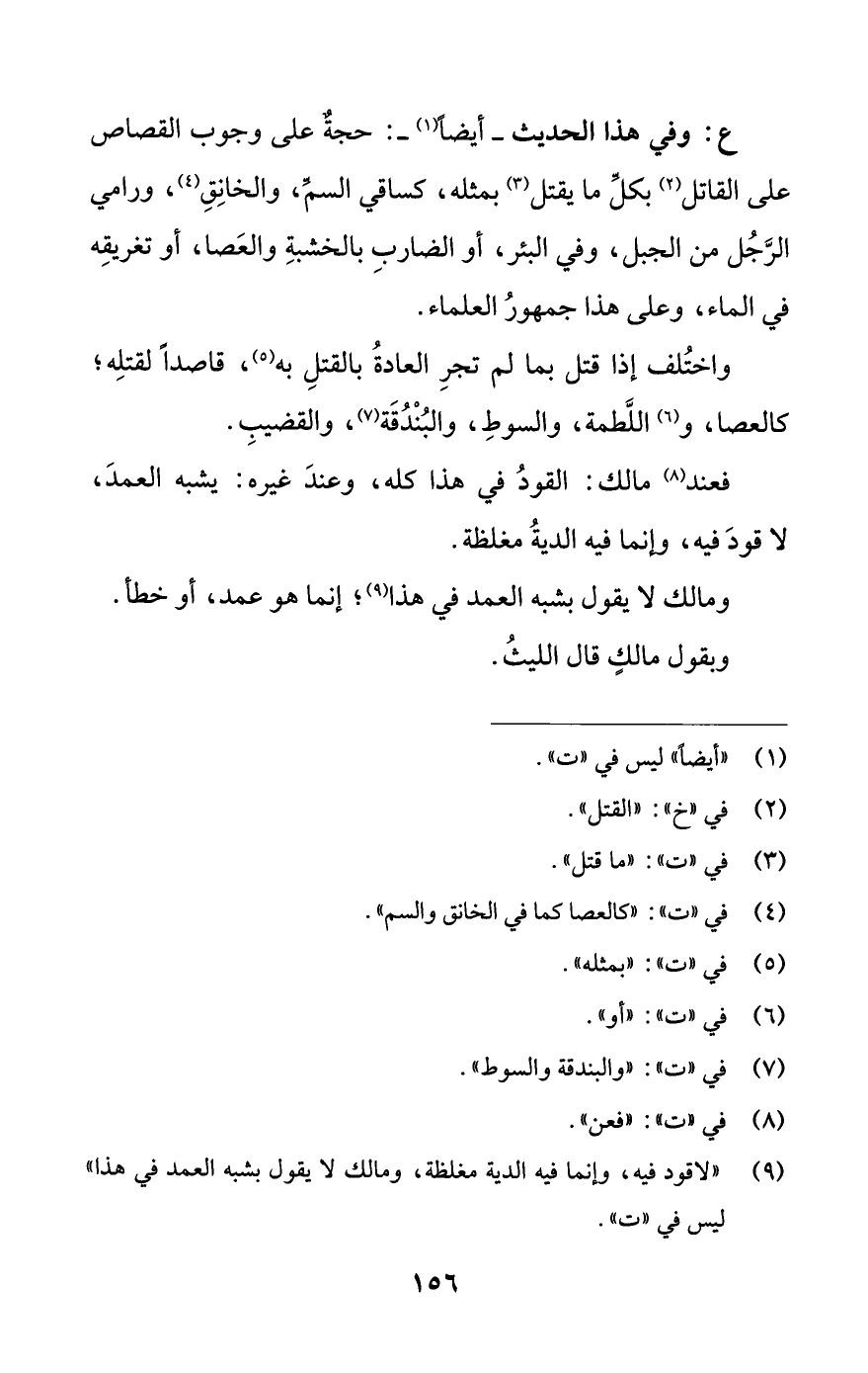 (¬9) "لا قود فيه، وإنما فيه الدية مغلظة، ومالك لا يقول بشبه العمد في هذا" ليس في "ت".