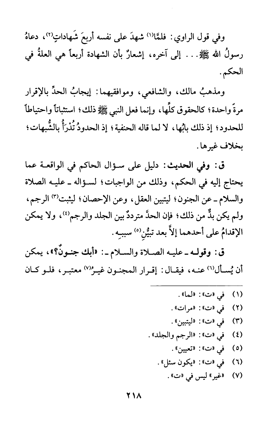 ق: وقوله -عليه الصلاة والسلام-: "أبك جنونٌ؟ "، يمكن أن يُسأل (¬6) عنه، فيقال: إقرار المجنون غيرُ (¬7) معتبر، فلو كان
