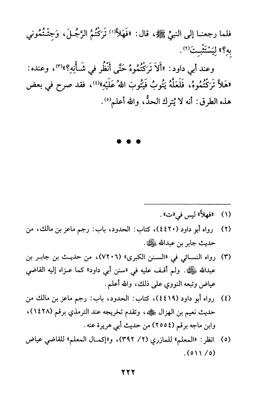 (¬4) رواه أبو داود (4419)، كتاب: الحدود، باب: رجم ماعز بن مالك من حديث نعيم بن الهزال -رضي اللَّه عنه-، وتقدم تخريجه عند الترمذي برقم (1428)، وابن ماجه برقم (2554) من حديث أبي هريرة عنه.