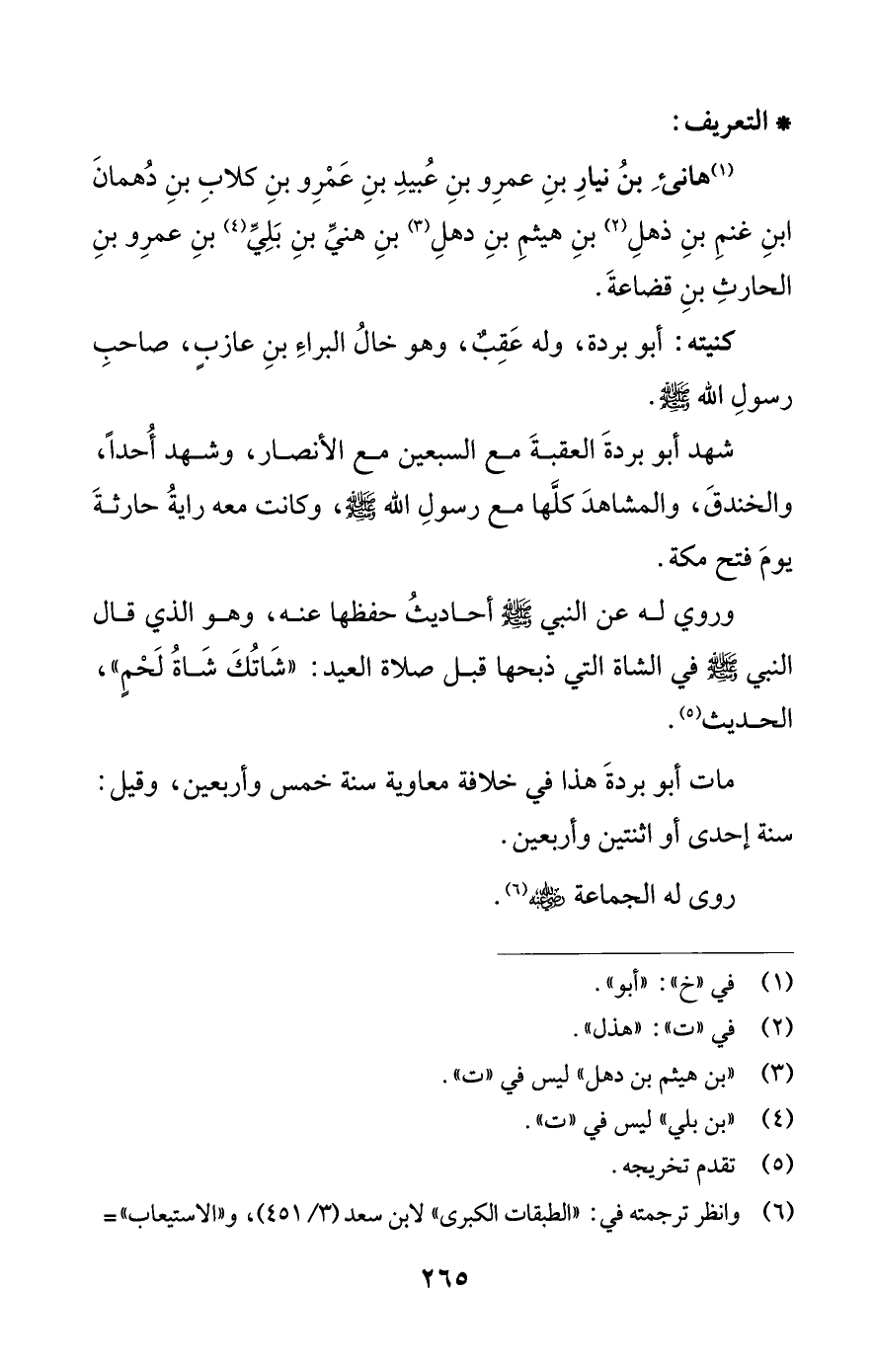 (¬1) هانىءِ بنُ نيارِ بنِ عمرِو بنِ عُبيدِ بنِ عَمْرِو بنِ كلابِ بنِ دُهمانَ ابنِ غنمِ بنِ ذهلِ (¬2) بنِ هيثمِ بنِ دهلِ (¬3) بنِ هنيِّ بنِ بَلِيِّ (¬4) بنِ عمرِو بنِ الحارثِ بنِ قضاعةَ.