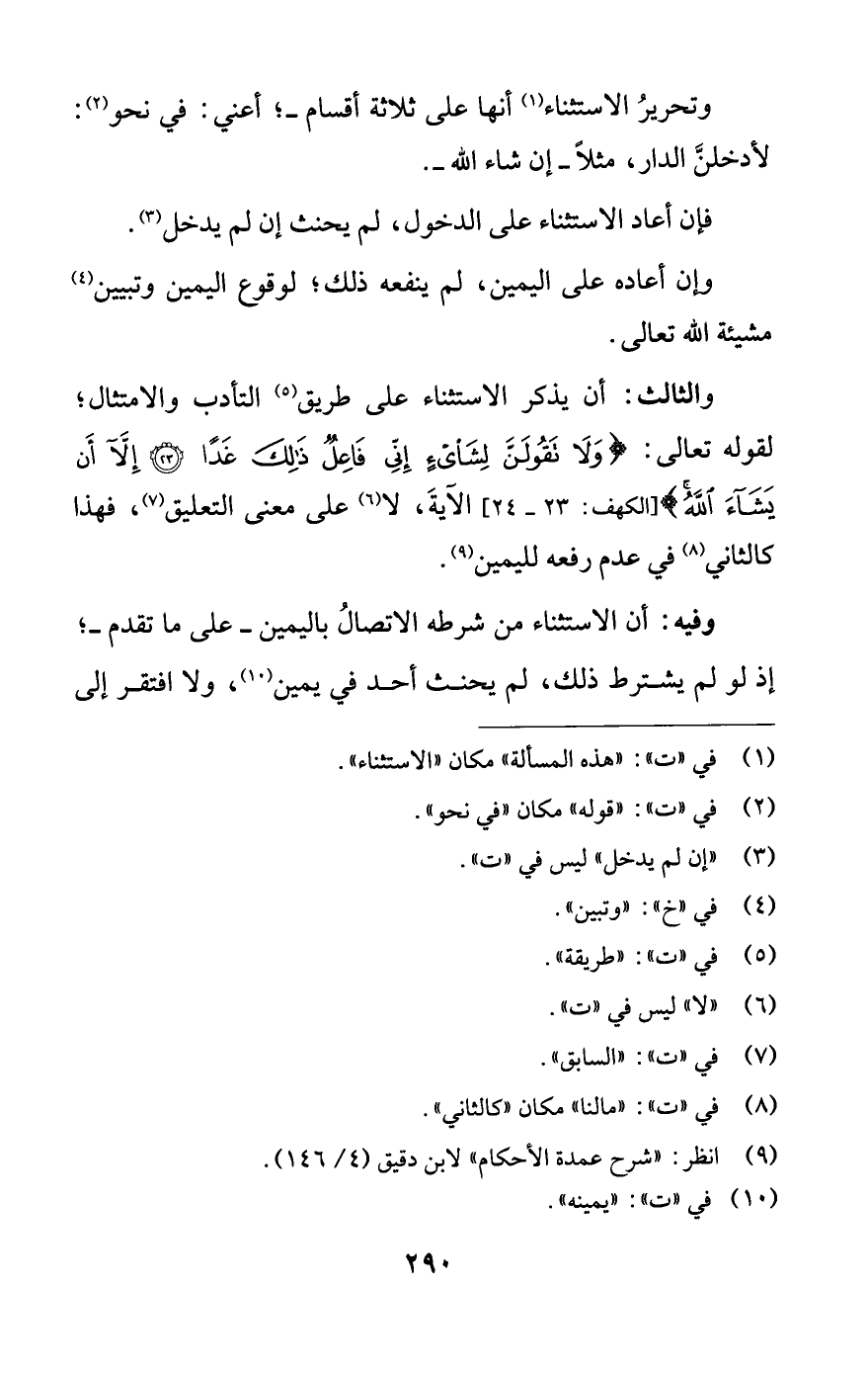 وتحريرُ الاستثناء (¬1) أنها على ثلاثة أقسام -؛ أعني: في نحو (¬2): لأدخلنَّ الدَّار، مثلًا -إن شاء اللَّه-.