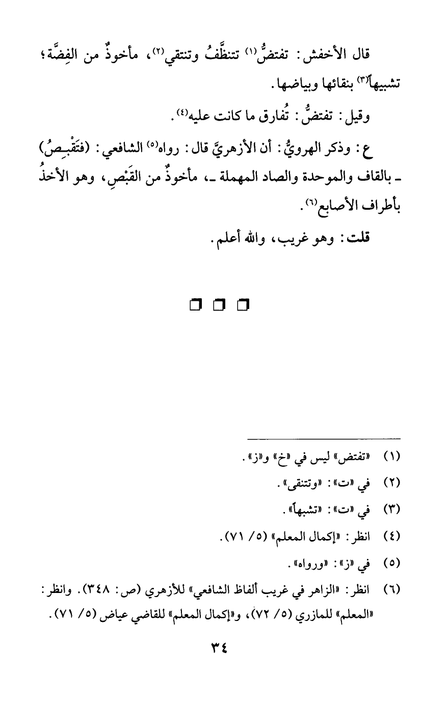 (¬6) انظر: "الزاهر في غريب ألفاظ الشافعي" للأزهري (ص: 348). وانظر: "المعلم" للمازري (5/ 72)، و"إكمال المعلم" للقاضي عياض (5/ 71).
