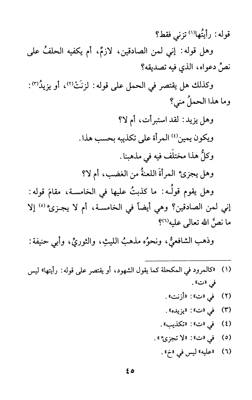 وهل يقوم قولُه: ما كذبتُ عليها في الخامسة، مقامَ قوله: إني لمن الصادقين؟ وهي أيضًا في الخامسة، أم لا يجزىء (¬5) إلا ما نصَّ اللَّه تعالى عليه (¬6)؟