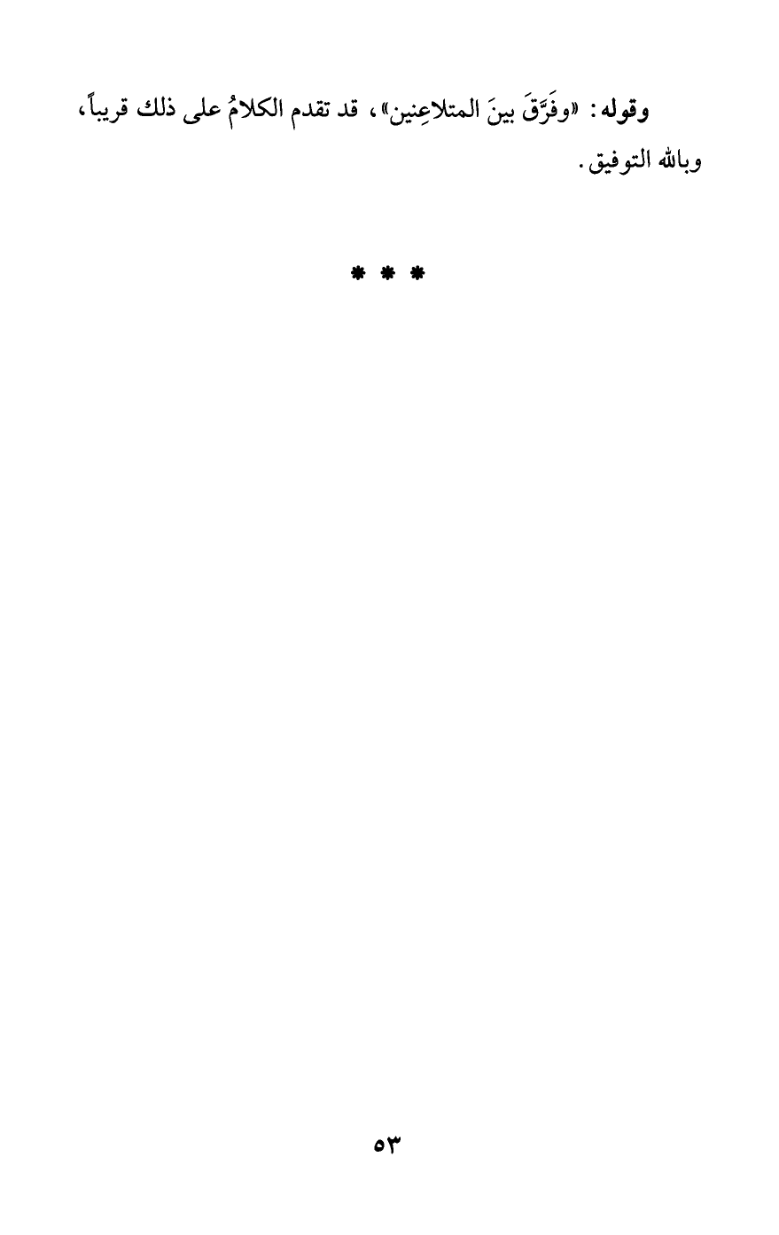 وقوله: "وفَرَّقَ بينَ المتلاعِنين"، قد تقدم الكلامُ على ذلك قريبًا، وباللَّه التوفيق.