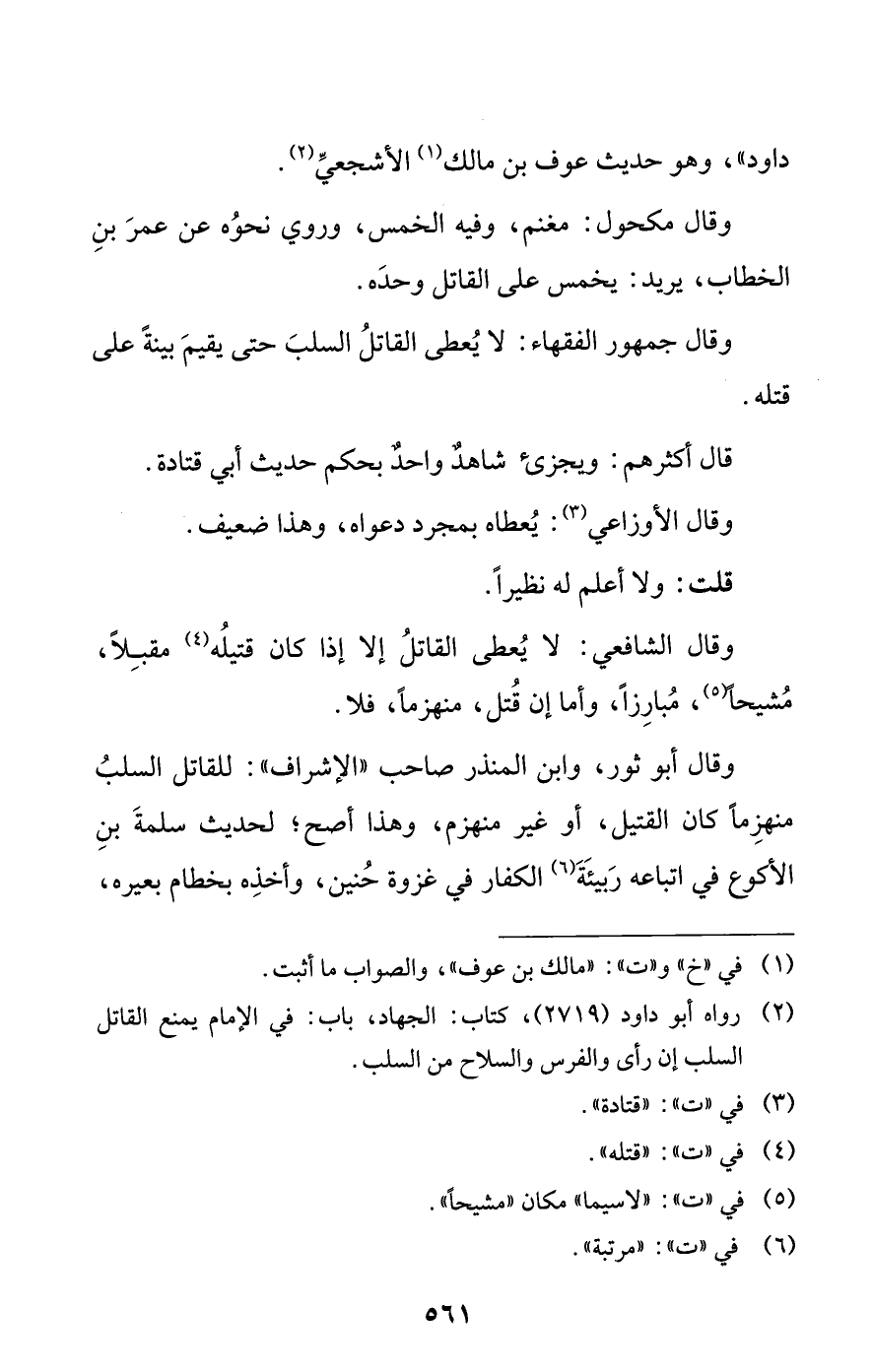 (¬2) رواه أبو داود (2719)، كتاب: الجهاد، باب: في الإمام يمنع القاتل السلب إن رأى والفرس والسلاح من السلب.