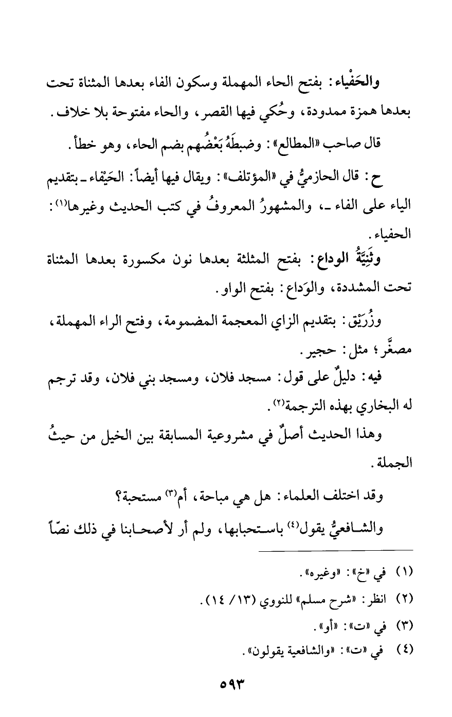 ح: قال الحازميُّ في "المؤتلف": ويقال فيها أيضًا: الحَيْفاء -بتقديم الياء على الفاء-، والمشهورُ المعروفُ في كتب الحديث وغيرها (¬1): الحفياء.