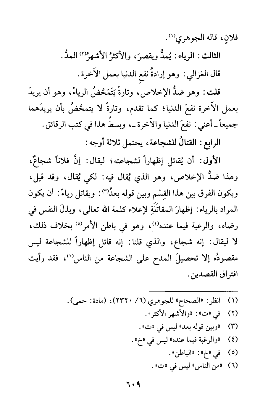 الرابع: القتالُ للشجاعة، يحتمل ثلاثة أوجه: