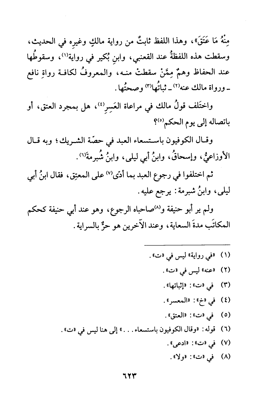 (¬6) قوله: "وقال الكوفيون باستسعاء. . . " إلى هنا ليس في "ت".