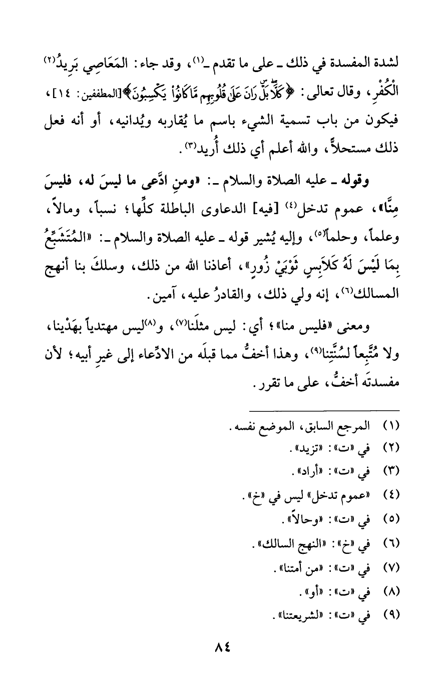 وقوله -عليه الصلاة والسلام-: "ومنِ ادَّعى ما ليسَ له، فليسَ مِنَّا"، عموم تدخل (¬4) [فيه] الدعاوى الباطلة كلِّها؛ نسبًا، ومالًا، وعلمًا، وحلمًا (¬5)، وإليه يُشير قوله -عليه الصلاة والسلام-: "المُتَشَبِّعُ بِمَا لَيْسَ لَهُ كَلَابِسٍ ثَوْبَيْ زُورٍ"، أعاذنا اللَّه من ذلك، وسلكَ بنا أنهج المسالك (¬6)، إنه ولي ذلك، والقادرُ عليه، آمين.