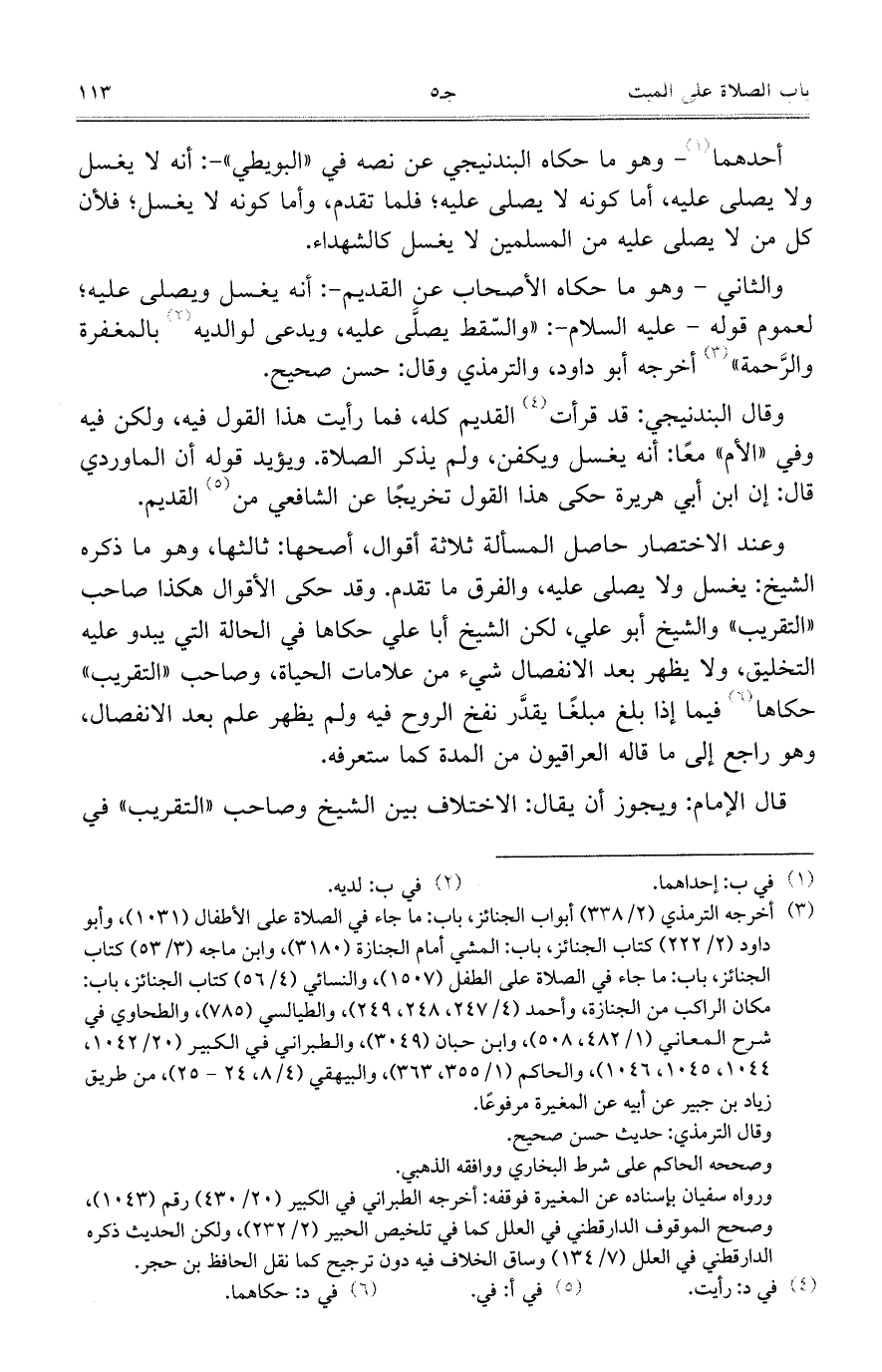 وعند الاختصار حاصل المسألة ثلاثة أقوال، أصحها: ثالثها، وهو ما ذكره الشيخ: يغسل ولا يصلى عليه، والفرق ما تقدم. وقد حكى الأقوال هكذا صاحب "التقريب" والشيخ أبو علي، لكن الشيخ أبا علي حكاها في الحالة التي يبدو عليه التخليق، ولا يظهر بعد الانفصال شيء من علامات الحياة، وصاحب "التقريب" حكاها فيما إذا بلغ مبلغاً يقدر نفخ الروح فيه ولم يظهر علم بعد الانفصال، وهو راجع إلى ما قاله العراقيون من المدة كما ستعرفه.