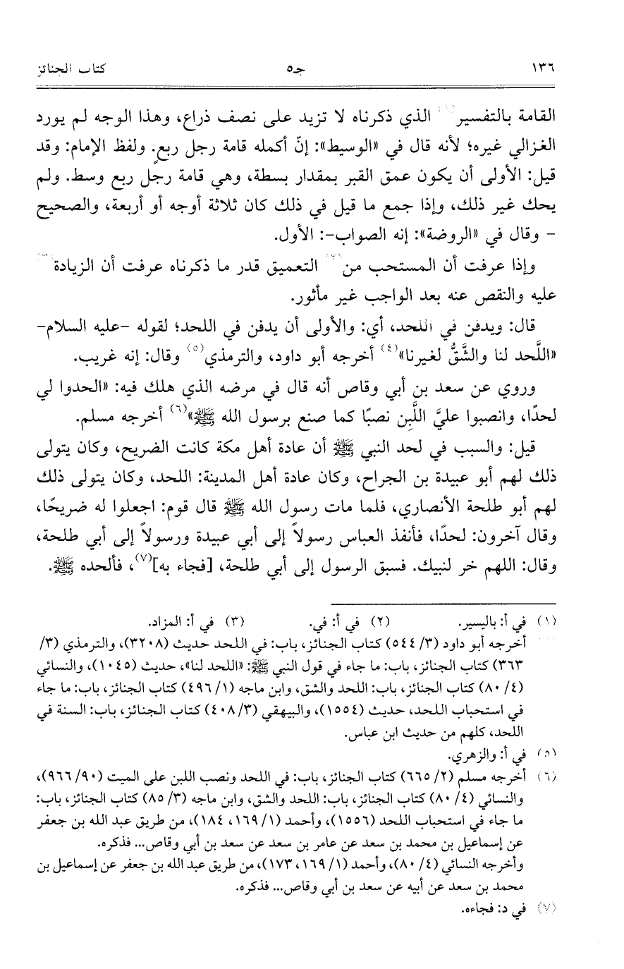 القامة بالتفسير الذي ذكرناه لا تزيد على نصف ذراع، وهذا الوجه لم يورد الغزالي غيره؛ لأنه قال في "الوسيط": إن أكمله قامة رجل ربع. ولفظ الإمام: وقد قيل: الأولى أن يكون عمق القبر بمقدار بسطة، وهي قامة رجل ربع وسط. ولم يحك غير ذلك، وإذا جمع ما قيل في ذلك كان ثلاثة أوجه أو أربعة، والصحيح- وقال في "الروضة": إنه الصواب-: الأول.
