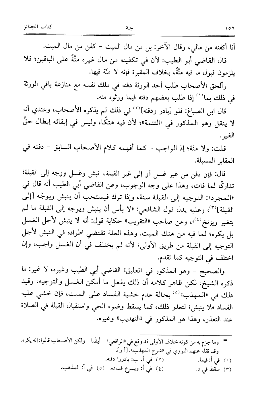 أنا أكفنه من مالي، وقال الآخر: بل من مال الميت- كفن من مال الميت.