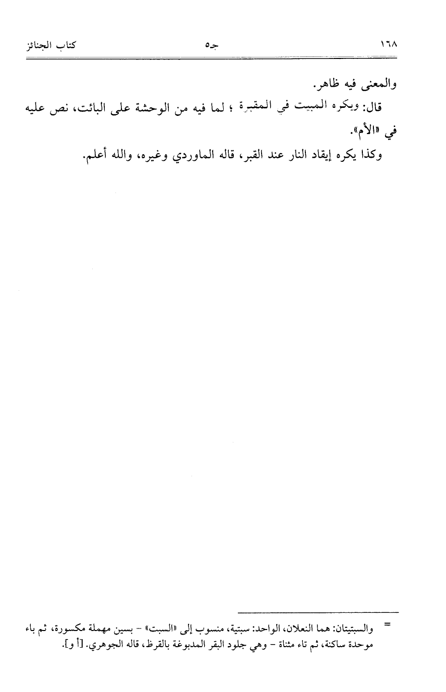 قال: ويكره المبيت في المقبرة؛ لما فيه من الوحشة على البائت، نص في "الأم".