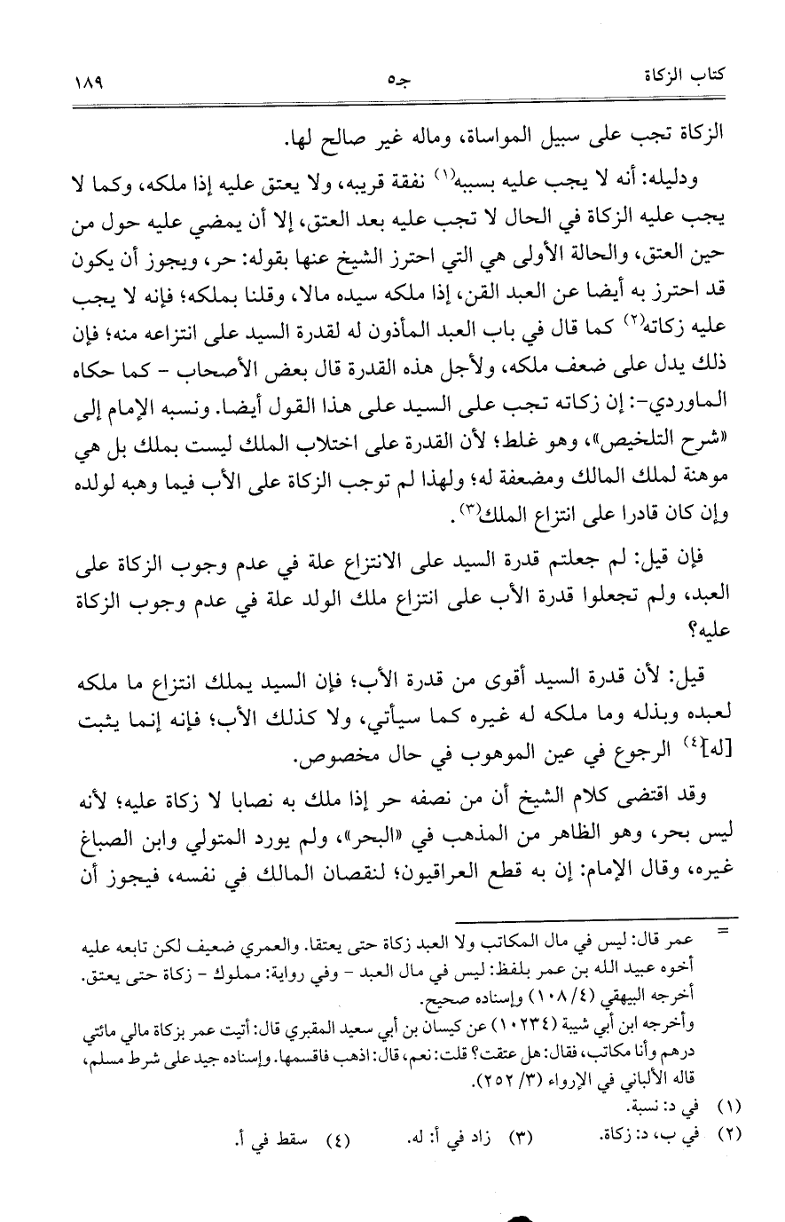 ودليله: أنه لا يجب عليه بسببه نفقة قريبه، ولا يعتق عليه إذا ملكه، وكما لا يجب عليه الزكاة في الحال لا تجب عليه بعد العتق، إلا أن يمضي عليه حول من حين العتق، والحالة الأولى هي التي احترز الشيخ عنها بقوله: حر، ويجوز أن يكون قد احترز به أيضاً عن العبد القن، إذا ملكه سيده مالا، وقلنا بملكه؛ فإنه لا يجب عليه زكاته كما قال في باب العبد المأذون له لقدرة السيد على انتزاعه منه؛ فإن ذلك يدل على ضعف ملكه، ولأجل هذه القدرة قال بعض الأصحاب- كما حكاه الماوردي-: إن زكاته تجب على السيد على هذا القول أيضاً. ونسبه الإمام إلى "شرح التلخيص"، وهو غلط؛ لأن القدرة على اختلاب الملك ليست بملك بل هي موهنة لملك المالك ومضعفة له؛ ولهذا لم توجب الزكاة على الأب فيما وهبه لولده وإن كان قادراً على انتزاع الملك.