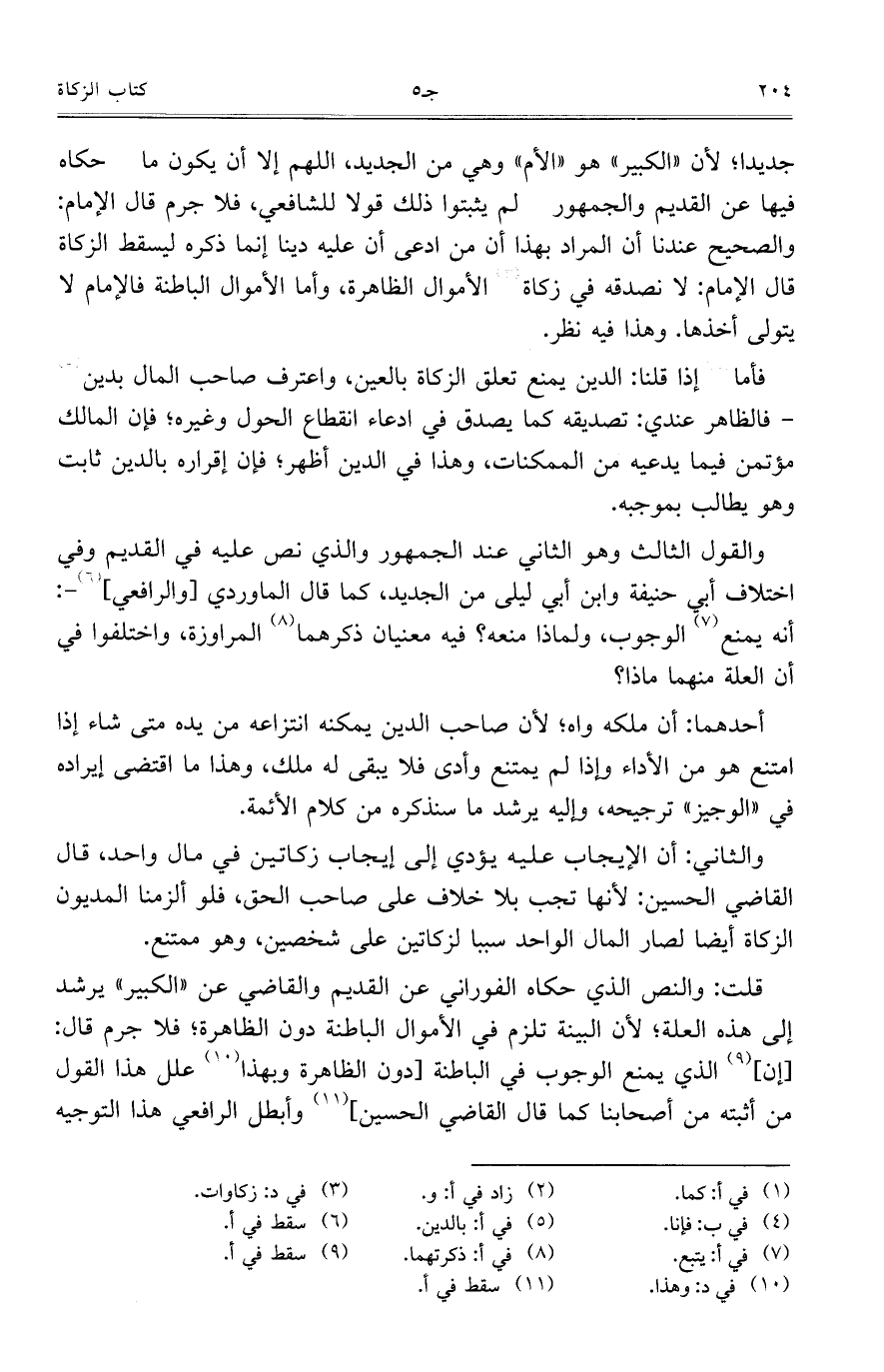 قلت: والنص الذي حكاه الفوراني عن القديم والقاضي عن "الكبير" يرشد إلى هذه العلة؛ لأن البينة تلزم في الأموال الباطنة دون الظاهرة؛ فلا جرم قال: [إن] الذي يمنع الوجوب في الباطنة [دون الظاهرة وبهذا علل هذا القول من أثبته من أصحابنا كما قال القاضي الحسين] وأبطل الرافعي هذا التوجيه