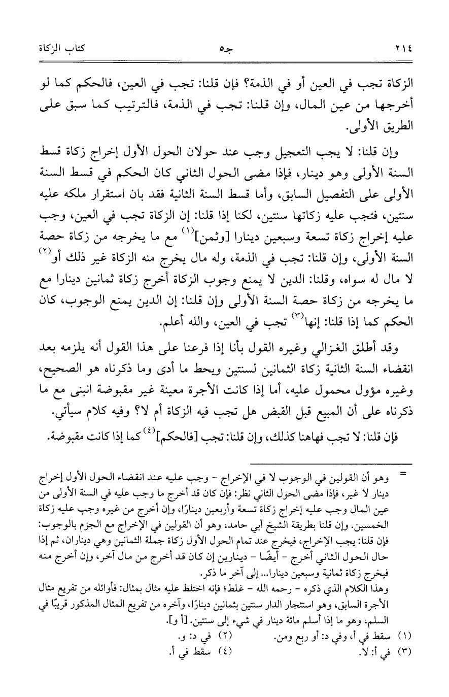 وقد أطلق الغزالي وغيره القول بأنا إذا فرعنا على هذا القول أنه يلزمه بعد انقضاء السنة الثانية زكاة الثمانين لسنتين ويحط ما أدى وما ذكرناه هو الصحيح، وغيره مؤول محمول عليه، أما إذا كانت الأجرة معينة غير مقبوضة انبنى مع ما ذكرناه على أن المبيع قبل القبض هل تجب فيه الزكاة أم لا؟ وفيه كلام سيأتي.